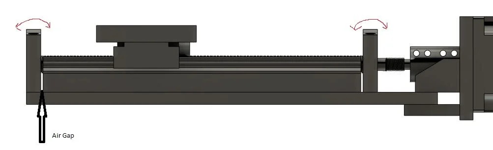 There are 2 major flaws in the design of these pre-built linear stages when looking at them for rigidity.